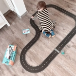 De set bevat alles om een ronde baan van 400 cm te maken met een speeloppervlak van 150 × 100 cm. Compatibel met alle accessoires uit de MyRoads-serie, zodat je de baan op elk moment kunt uitbreiden. Autootjes zijn niet inbegrepen. Als natuurproduct kan het materiaal lichte kleurafwijkingen vertonen.