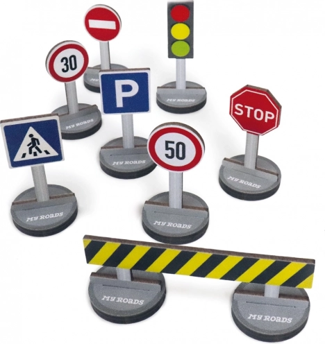 Breid je speelstad uit met realistische elementen met de milieuvriendelijke set verkeersborden MAGELLAN MYROADS. Deze set van duurzame materialen bevat hoogwaardig afgewerkte borden met voetstukken, is volledig compatibel met alle producten uit de MyRoads-serie en stimuleert uitstekend de verbeelding, fijne motoriek en coördinatie van kinderen.