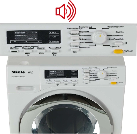 Deze gelicentieerde kinderwasmachine MIELE bootst een echt apparaat trouw na en stimuleert kinderen in fantasie en fijne motoriek. Dankzij vier realistische programma’s – vullen, wassen, afvoeren en centrifugeren – beleven kleine helpers veel plezier. LED-lampje en realistische geluiden van de afzonderlijke fasen maken van elk spel een belevenis.