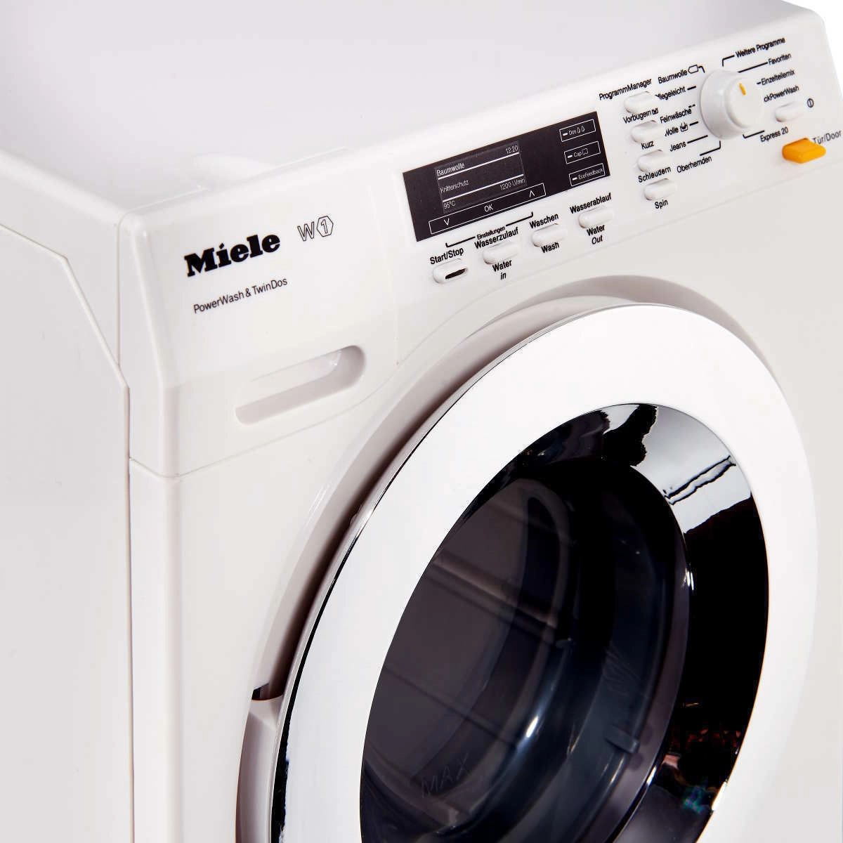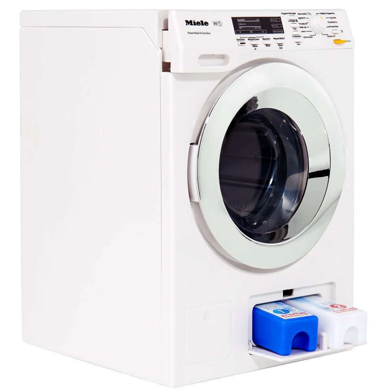 Realistische kinderwasmachine MIELE van het merk KLEIN biedt kinderen authentiek speelplezier bij het nadoen van volwassenen. Beschikt over een draaide trommel, 4 wasprogramma’s, LED-indicatie en de mogelijkheid om met of zonder water te wassen. Dankzij geluidseffecten en een werkende lade voor water is het spel nog geloofwaardiger en veilig voor kinderen vanaf 3 jaar.
