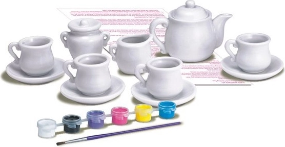 In de set vind je alles wat je nodig hebt om het 13-delige mini-theeservies te versieren. Na het versieren is het ideaal om mee te spelen met vriendjes of poppen, maar ook als mooie toevoeging aan de kinderkamer.