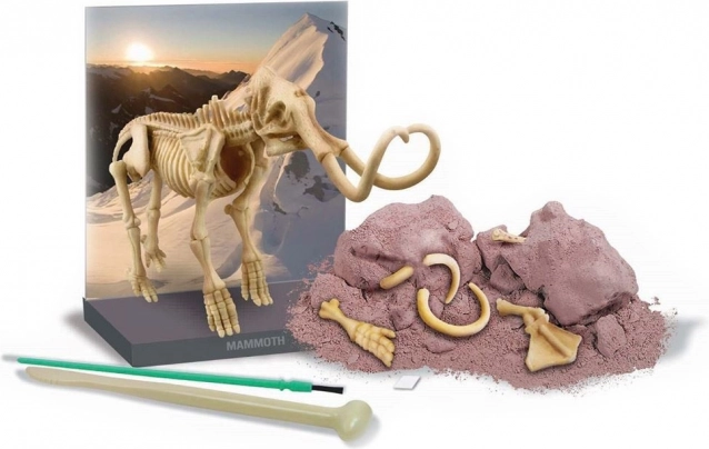 Ontdek de magie van paleontologie met de wetenschappelijke set Opgravingen - Mammoet. De set bevat een gipsblok waarin de botten van de mammoet verborgen zijn en gereedschappen om ze te zoeken. Na het vinden en reinigen van alle botten kan het volledige skelet worden samengesteld, wat een hoogte van ongeveer 21 centimeter bereikt.