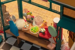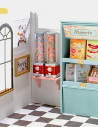 Duik in een wereld van fantasie en kleur met het 3D DIY miniatuurhuis CANDY HOUSE banketbakkerij. Transparante ramen, openslaande deuren en talloze zoete details creëren een realistische scène die onder je handen tot leven komt. De onderdelen zijn nauwkeurig laser-gesneden en ontworpen voor veilige en stabiele bevestiging, zodat je je kunt concentreren op plezier en creativiteit.