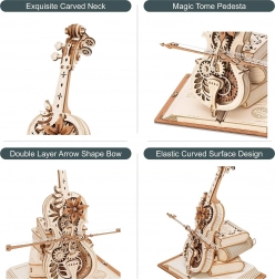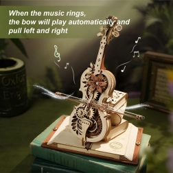 Een elegant cellomodel op een sokkel van drie boeken met een romantische retro-uitstraling en klassieke Europese patronen. Nauwkeurig uitgesneden onderdelen van hout en metaal passen perfect in elkaar en na het opwinden klinkt de beroemde melodie Nocturne, Op. 9 nr. 2 (Es-groot), terwijl de strijkstok vloeiend heen en weer beweegt. Het resultaat is een betoverende combinatie van muziek en mechaniek die in ieder interieur opvalt.