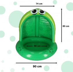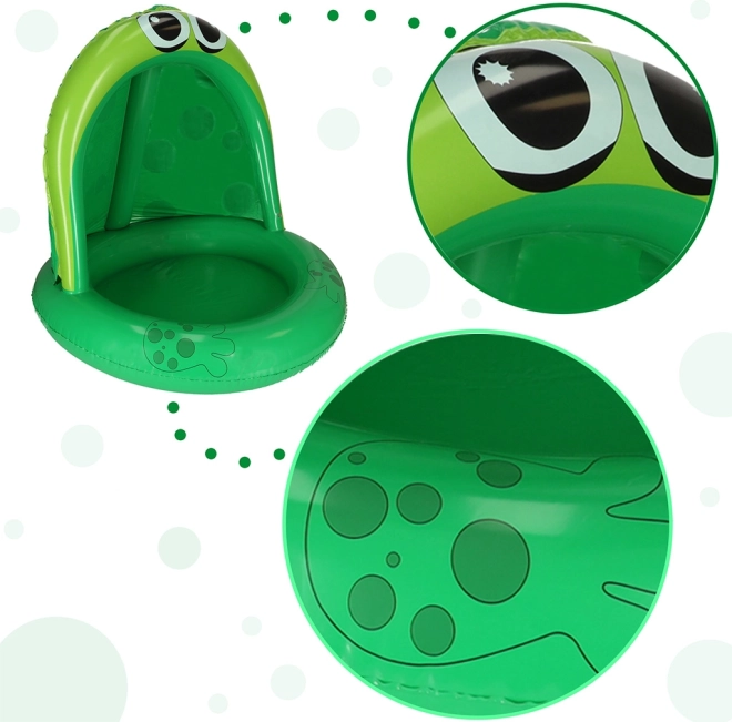 Het levendige groene ontwerp met grote kikkeroogjes en opblaasbare pootjes geeft het een authentieke uitstraling. Bovendien beschermt de slimme overkapping kinderen tegen schadelijke UV-stralen, wat lange uren veilig waterplezier garandeert.