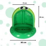 Het zwembad is ontworpen in de vorm van een kikker met heldergroene kleur, grote ogen en opblaasbare pootjes, wat een speelse touch aan elk spel toevoegt.
