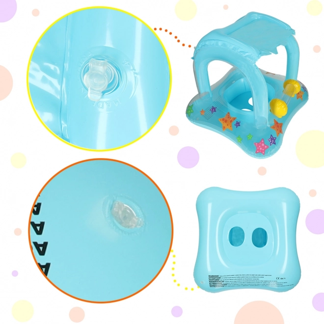 Het opblaasbare zwemring met luifel is de ideale oplossing voor veilige waterpret voor uw kleintjes. De aantrekkelijke blauwe kleur en kleurrijke zeesterren versieren elke dag bij het water. De luifel beschermt het kind tegen zonnestralen, terwijl het comfortabel kan spelen en schommelen op de golven.