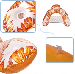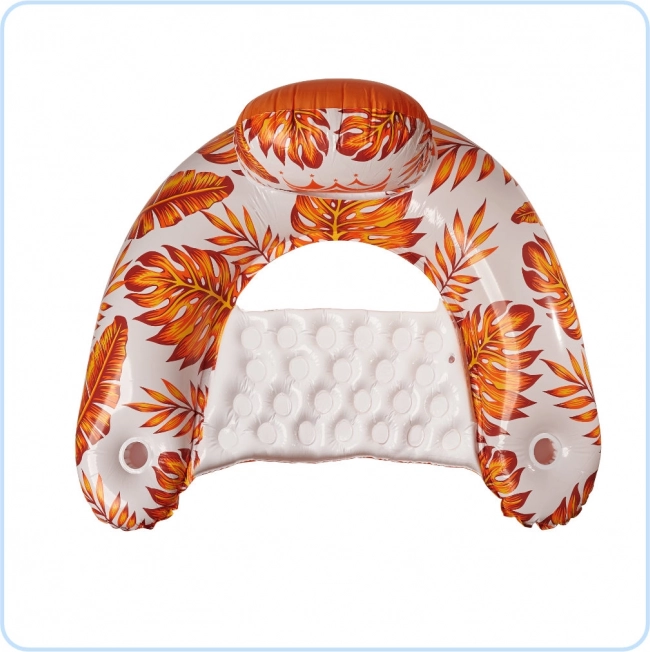 De opblaasbare stoel verfrist je zelfs op zeer zonnige dagen en het aantrekkelijke ontwerp met palm- en monstera-bladenpatroon trekt direct de aandacht. Naast visueel plezier is de stoel gemakkelijk draagbaar en neemt buiten het seizoen weinig ruimte in beslag.