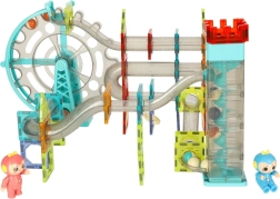 Bouw hoge torens, hellingen en spiralen waarop de knikkers dankzij de zwaartekracht naar beneden suizen. Het modulaire systeem stimuleert experimenteren met snelheid en richting.