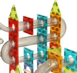 Sterke magneten houden de constructies stevig bij elkaar en transparante buizen laten kinderen elke beweging van de knikkers volgen. Bouwen is snel, stabiel en leuk.