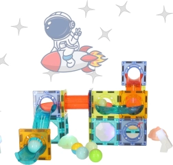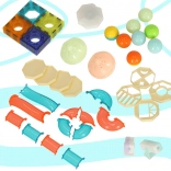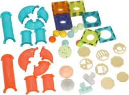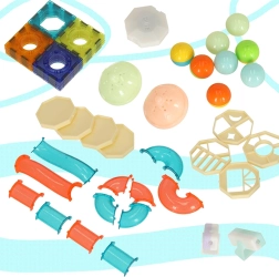 De set biedt veelzijdig bouwen in 2D en 3D: van eenvoudige vormen tot complexe banen. Magnetische vierkanten zorgen voor een stabiele constructie, terwijl buizen en tunnels eenvoudig “vastklikken”. Dankzij de lichtgevende onderdelen en knikkers verandert elke afdaling in een leuke, visueel aantrekkelijke show.