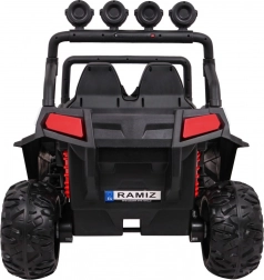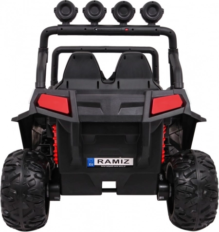 De Grand Buggy 4x4 Lift is een ruime en robuuste wagen voor twee kinderen, die oneffen terrein de baas is dankzij de grote EVA-banden, achterste schokdempers en de hoge bodemvrijheid van 16 cm. Vier 45 W motoren en twee 12 V/7 Ah accu’s zorgen voor een vloeiende start, rijden vooruit en achteruit, en lang speelplezier op één lading.