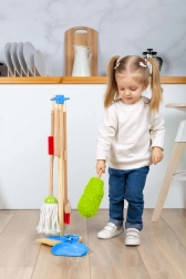 Lucy & Leo Houten schoonmaakset biedt uw kinderen de mogelijkheid de basis van schoonmaken op een speelse en leuke manier te leren. Met deze set kunnen kinderen echte schoonmaakactiviteiten nabootsen en hun motoriek oefenen.