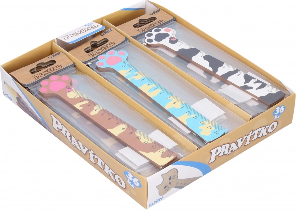 Deze liniaal is verkrijgbaar in vier verschillende kleuren en het kattenpoot motief zal zelfs de meest veeleisende schoolwerkzaamheden opvrolijken. De verpakking bevat 36 stuks, wat een ideaal aanbod is voor schoolklassen of kinderclubs.