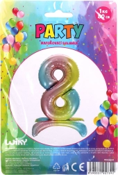 Stijlvolle folieballon in de vorm van het cijfer 8 met regenboogeffect, perfect voor verjaardagen, jubilea en themafeesten. Dankzij de opvallende kleuren en het grote formaat is het een vindingrijke decoratie en een fotogenieke toevoeging aan elke party.