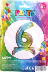 Regenboog op je feest? Met deze opblaasbare ballon in de vorm van het cijfer 6 creëer je eenvoudig een indrukwekkende fotobooth-decoratie en een centraal element in de aankleding. Dankzij de hoogte van 80 cm valt hij goed op en past hij perfect bij andere ballonnen of slingers.