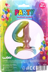Stijlvolle folieballon in de vorm van het cijfer 4 met regenboogeffect – een geweldige keuze voor verjaardagen, jubilea en themafeesten. Dankzij de opvallende kleuren en het grote formaat zorgt hij voor een blikvanger in de decoratie en een fotogenieke achtergrond voor elk feest.