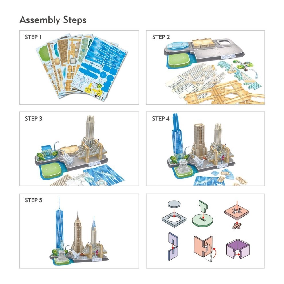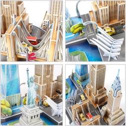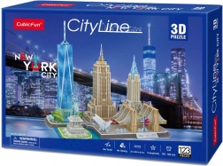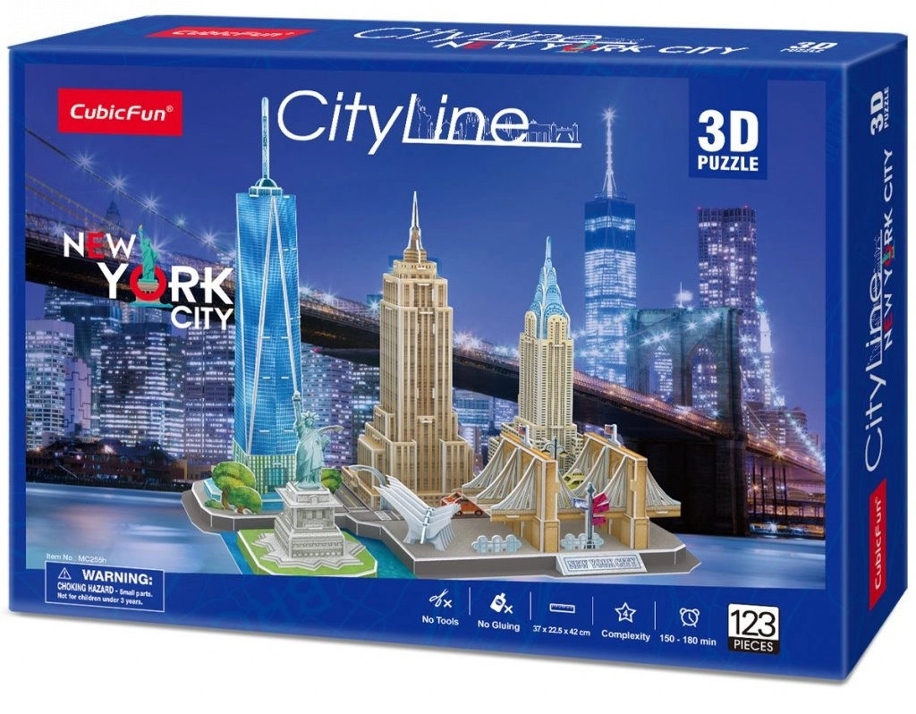 Puzzel 3D City Line New York is spannend vermaak voor zowel kinderen als volwassenen. De verpakking bevat 123 puzzelstukjes, gemaakt van een speciaal schuimachtig materiaal. De puzzelstukjes zijn genummerd, uitgesneden en op vellen geplaatst. Druk de stukjes eenvoudig zonder kracht uit het vel en zet ze in elkaar volgens de meegeleverde handleiding, zonder lijm of speciaal gereedschap te gebruiken.