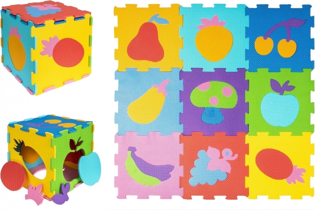 Hij is gemaakt van zacht schuim, aangenaam om aan te raken. Je kunt hem ook gebruiken als onderlegger voor andere spelletjes of om op te slapen. Het speelgoed stimuleert: opmerkingsvermogen, het herkennen van kleuren en vormen, het bouwen van ruimtelijke figuren en fantasierijk spel.