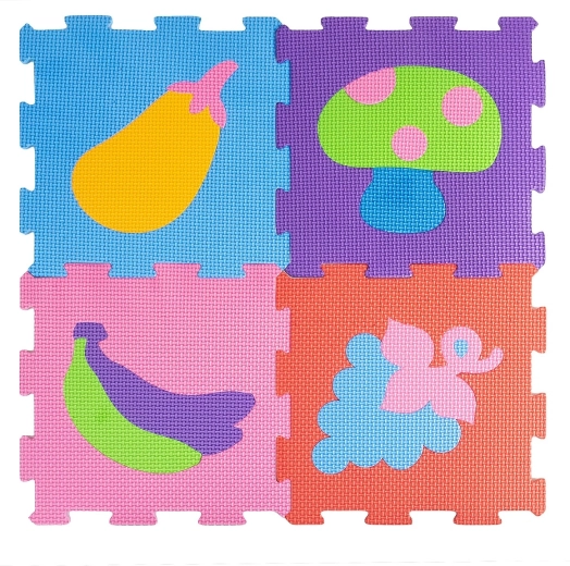 De kleurrijke schuimonderlegger kan worden gebruikt als vloerkleed – een onderlegger voor op de vloer – én als puzzel.