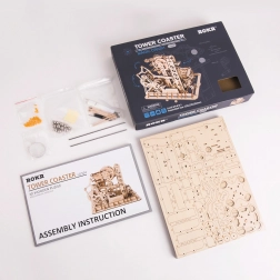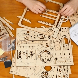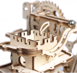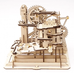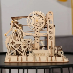 ROKR Climber is een handmatig te monteren knikkerbaan van exact laser-gesneden houten onderdelen. De elegante constructie met een centrale “vesting” gebruikt tandwielen, assen en hefmechanismen die knikkers soepel langs doordachte trajecten leiden. De bouwset stimuleert technisch denken, verbeeldingskracht en fijne motoriek – en is tegelijk een aantrekkelijke designdecoratie.