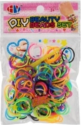 Set van 200 gekleurde elastiekjes met haak voor het eenvoudig maken van armbanden, hangers en als modieus haaraccessoire. Praktische verpakking 8,5 × 13 cm, geschikt voor kinderen vanaf 3 jaar.