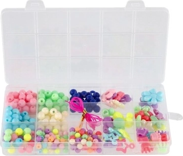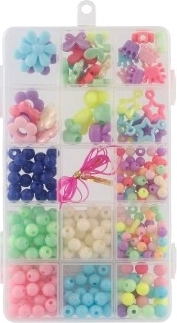 Ontdek het plezier van maken met deze complete kralenset, perfect voor beginners en jonge makers. In de box vind je een breed scala aan kleuren en vormen – van bolletjes tot bloemetjes – en dankzij het meegeleverde koord kun je meteen originele armbanden en kettingen maken. De transparante organizer met vakjes zorgt ervoor dat de kralen gesorteerd blijven en altijd binnen handbereik zijn.