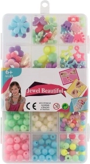 De set bevat verschillende vormen en maten kralen in levendige kleuren, die inspireren tot het maken van originele armbanden en kettingen.