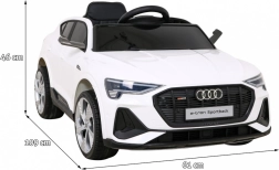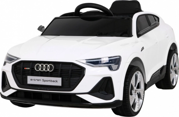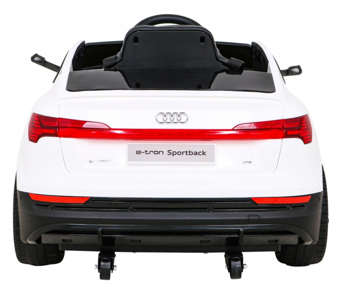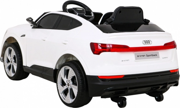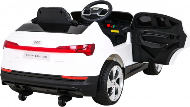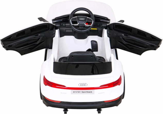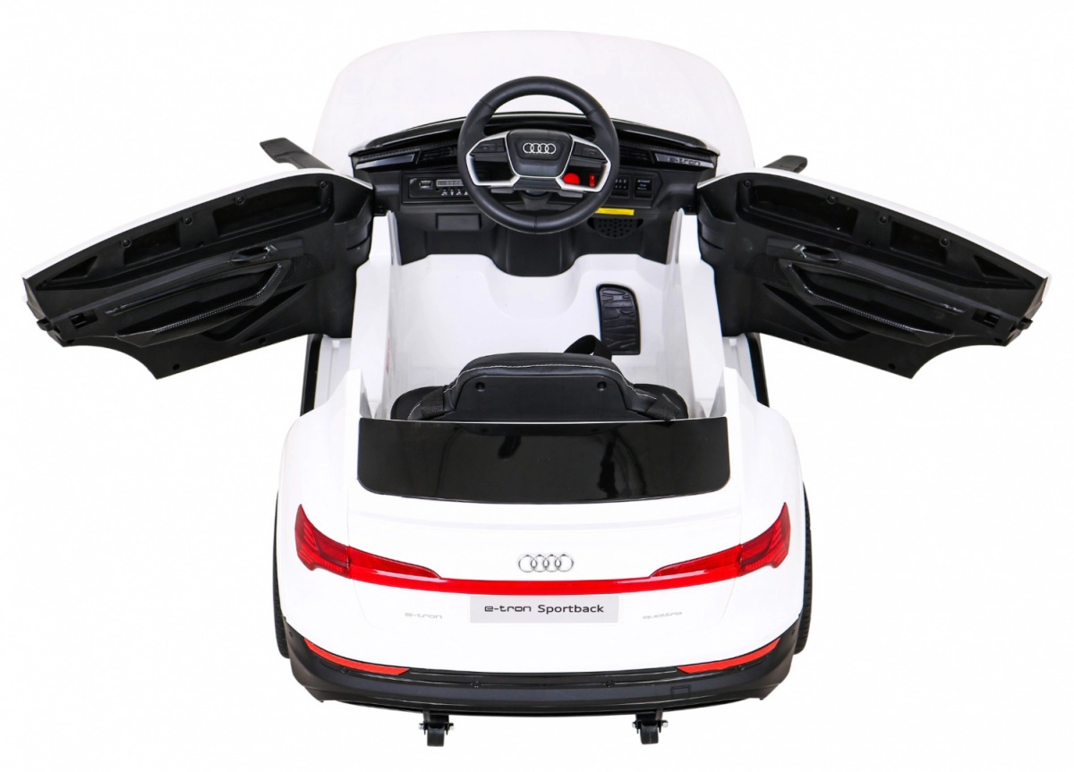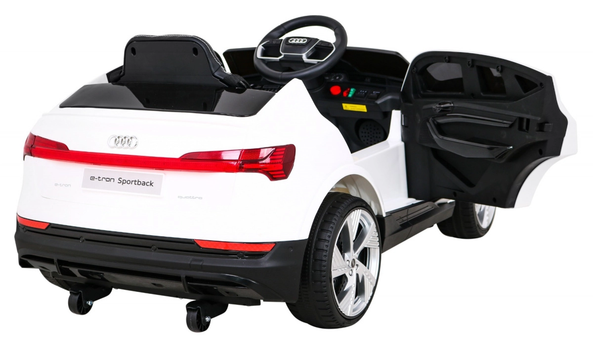 De gelicentieerde kinderauto AUDI e-tron Sportback brengt topdesign en functies van een echte auto in een veilige kindermaat. Vier motoren (4 × 25 W) met keuze voor 2- of 4-wielaandrijving, soepele start en achtervering zorgen voor comfortabel rijden op diverse ondergronden. Openende deuren, een verlicht startknopje met motorstart-effect en voor- en achter-LED-lichten maken de ervaring compleet.