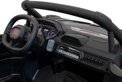 Speciaal ontworpen stoelen van eco-leer bieden comfort en veiligheid dankzij de gordels, terwijl openslaande deuren zorgen voor een realistische uitstraling. De auto heeft een geavanceerd audiopaneel met MP3, AUX, USB en Bluetooth voor de beste geluidservaring tijdens het spelen.