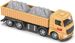 Robuuste kiepwagen met lange open laadruimte en imitatie van steenslag ondersteunt spelen op de bouwplaats. Een gedetailleerde cabine, meerdere assen en glanzende wielen verhogen de realiteit en het speelplezier.