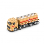 Beige tankwagen met cilindervormige tank, rode strepen en logo biedt soepel rijgedrag dankzij vrij draaiende wielen. Ideaal om vloeistoftransport na te spelen en de “verkeerswereld” van kinderen uit te breiden.