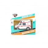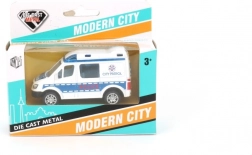 Start de actie in de stadsstraten met dit gedetailleerde metalen politie- of ambulanceautootje. Dankzij de robuuste die-cast uitvoering is het bestand tegen dagelijks spelen en ondersteunen de realistische prints fantasie en verhalen.