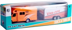 Terreinwagen met caravan met licht en geluid 1:32 – geel