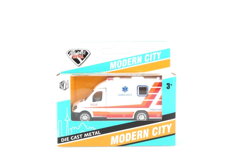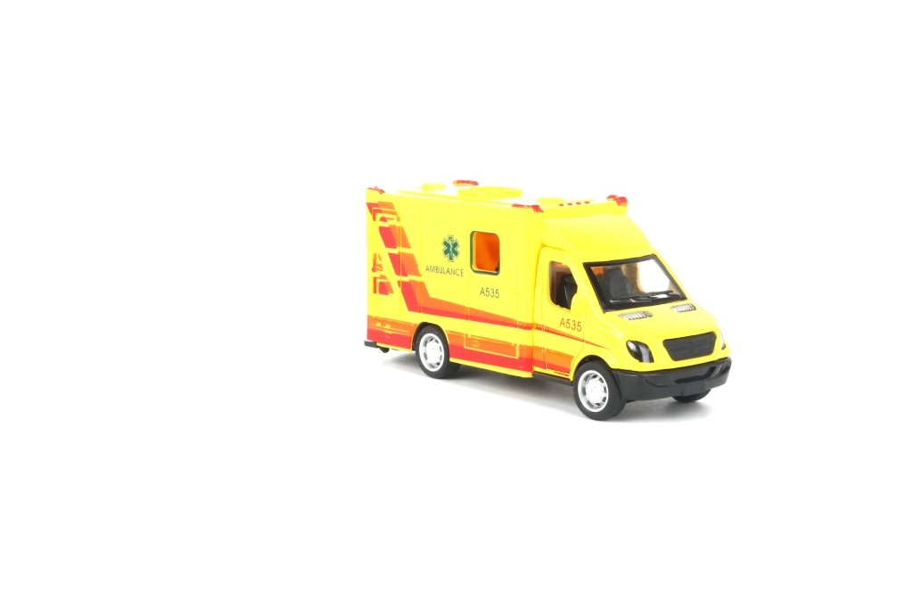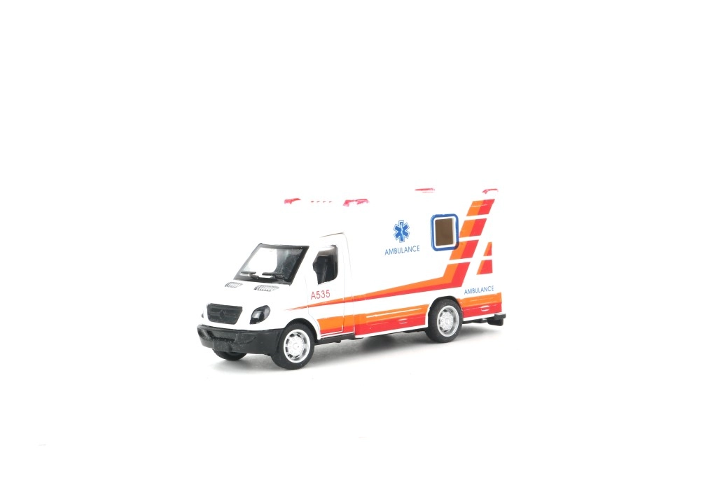 Ambulance met te openen deuren en pull-backfunctie – trek achteruit en rijd.