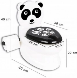 Kinderwc – potje met licht en geluid – geluidseffect van doorspoelen. Antislipbodem met 5 steunpunten, met houder voor toiletpapier en hersluitbare deksel. Uitneembare bak voor gemakkelijk legen en reinigen. Gefabriceerd zonder metalen bevestigingsmiddelen zoals schroeven en bouten. Daardoor geen risico op corrosie (roest) en vooral veilig voor kinderen. Gemakkelijk schoon te maken en hygiënisch. Eenvoudig te verplaatsen. Elegant en ergonomisch design. Doordat hij op een echte wc lijkt, houdt hij de aandacht van uw kind vast. Uw kind leert eenvoudig naar het toilet te gaan…