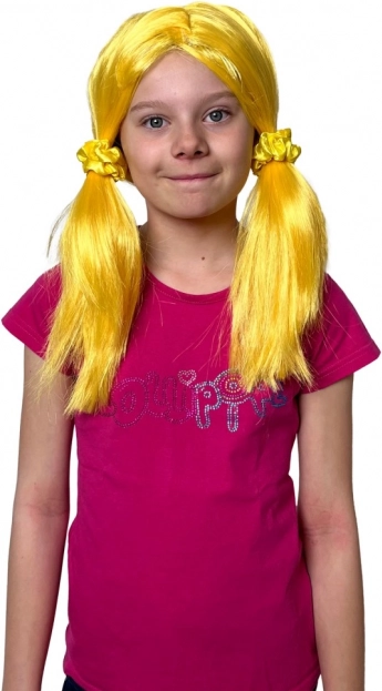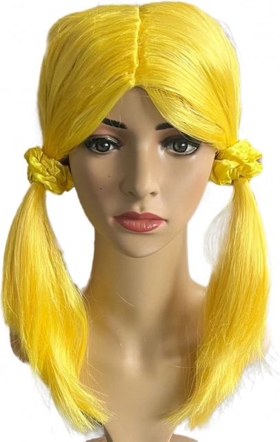 Word een ster zoals de populaire LOLLIPOPZ! De gele pruik met twee staartjes geeft je outfit energie en kleur. Hij is gemakkelijk op te zetten en blijft goed zitten, zodat je zorgeloos kunt dansen, zingen en spelen.