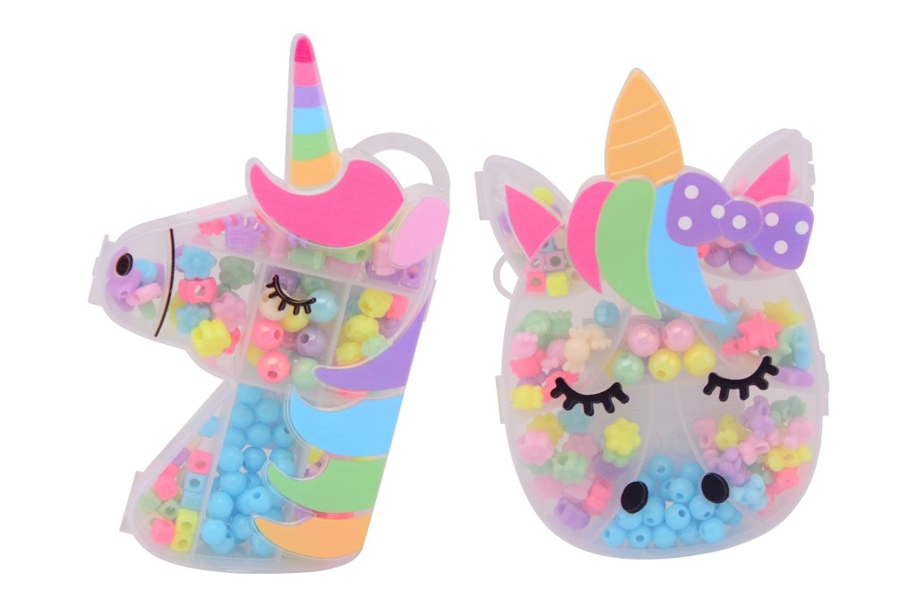 Ontdek de magie van knutselen met een stijlvolle kralenset, opgeborgen in een overzichtelijk doosje in de vorm van een eenhoorn. Het doosje maakt sorteren en meenemen eenvoudig, zodat u alle kralen altijd bij de hand heeft.