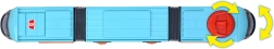 Op het dak van de tram bevindt zich een draaibaar logo waarmee kinderen intuïtief de rijrichting bepalen – naar rechts en naar links.