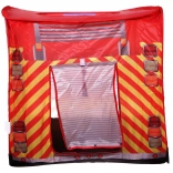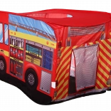 De tent heeft een open te klappen dak voor “blussen” en het verkennen van de omgeving, een achteringang voor gemakkelijk kruipen en een waterdichte bodem voor schoon en comfortabel spelen. Licht en duurzaam polyester is eenvoudig te onderhouden en de levendige kleuren met brandweerprint spreken kinderen meteen aan.
