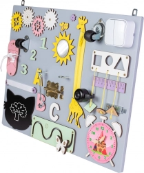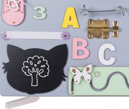 Ontdek leuk en leerzaam spel met een hoogwaardige houten activiteiten-/manipulatieplaat voor kinderen. Deze plaat biedt een veilige kennismaking met alledaagse voorwerpen, ondersteunt de fijne motoriek, coördinatie en logisch denken. Dankzij doordachte elementen zoals een ritssluiting, bel, klok en krijt is leren door spel leuk en boeiend.