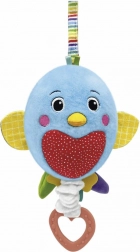 Het hartvormige bijtspeeltje hangt aan de onderkant van het vogeltje en start bij het trekken een zachte Brahms-melodie met een kalmerend effect.