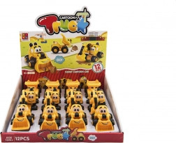 Schattig plastic bouwvoertuigje van ca. 9 cm met vrijloop dat kleine chauffeurs al vanaf 12 maanden plezier bezorgt. Verkrijgbaar in 3 soorten, ideaal voor de eerste racejes en het ontdekken van de wereld op vier wielen. Perfect voor in de kinderkamer en onderweg, verpakt per 12 stuks in een doos (geschikt als winkelverpakking).