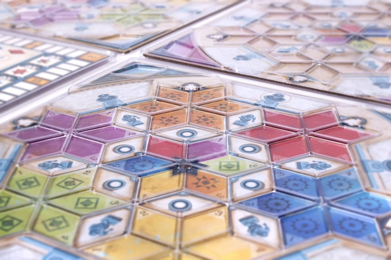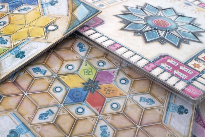 Ergeren de verschuivende elementen op de paviljoenborden je? Of zoek je spelvariatie en alternatieve scoremethoden? In beide gevallen is Azul: Stralend Paviljoen de ideale oplossing! Deze uitbreiding bevat een organisatiemat en nieuwe paviljoenborden, waarmee je unieke strategieën kunt uitwerken. In de doos zitten ook praktische plastic afdekkers voor de borden, die niet alleen de esthetiek van het spel verhogen, maar ook helpen om alle speelstukken perfect op hun plaats te houden.