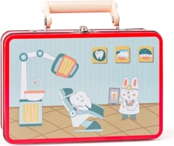 Ontdek speels en veilig plezier voor kleine dokters! Deze tandartsenset voor kinderen bevat houten hulpmiddelen in een praktische metalen doos en stimuleert de fantasie en de fijne motoriek. Veilige uitvoering van hout, duurzame metalen doos en fantastisch rollenspel voor kinderen vanaf 3 jaar.