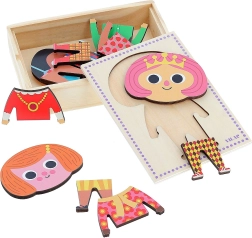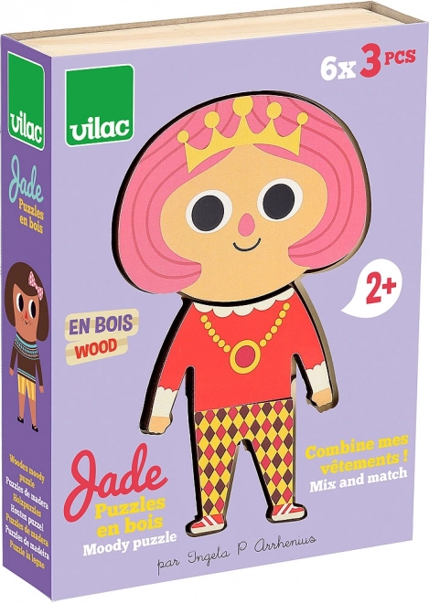 De aankleedpuzzel Jade met 6 verschillende outfits stelt kinderen in staat talloze combinaties te maken en hun creativiteit en motoriek te ontwikkelen. Bevat 18 stukken in een handige doos.