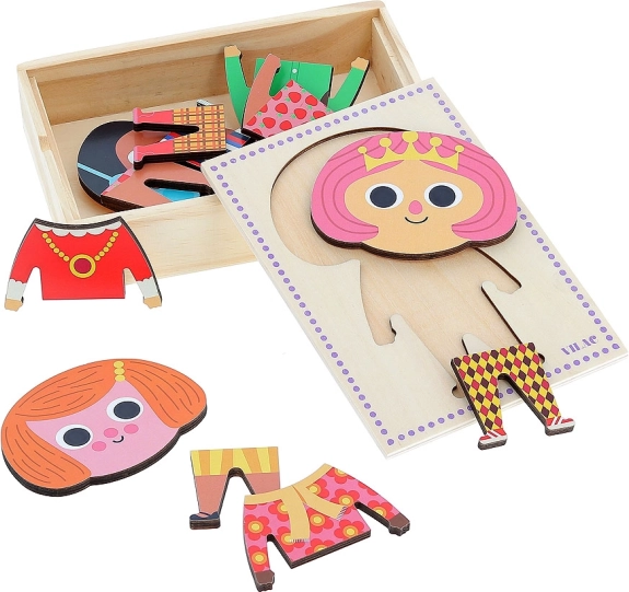 Deze houten aankleedpuzzel biedt kinderen de mogelijkheid om het personage Jade stijlvol aan te kleden. Met 6 verschillende outfits kunnen kinderen verschillende combinaties maken en hun verbeelding ontwikkelen.