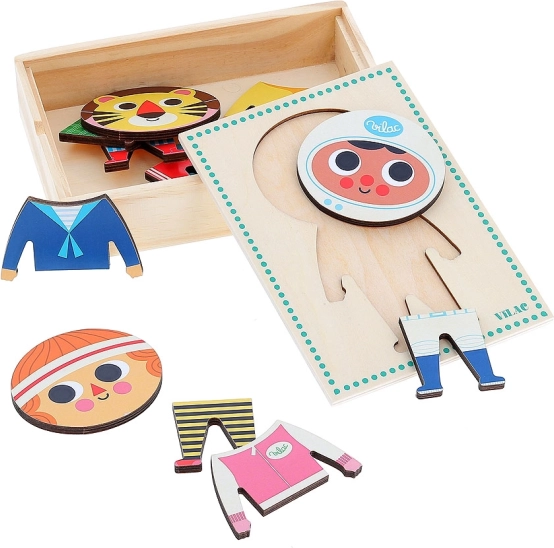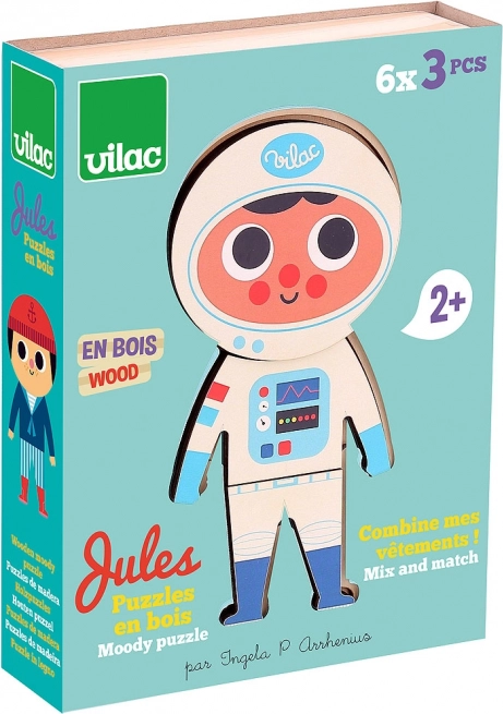 Vilac aankleedpuzzel Jules biedt eindeloze mogelijkheden voor kledingcombinaties voor kinderen. Met 6 verschillende outfits kunnen kleine creatievelingen unieke en verrassende modecreaties maken!