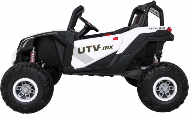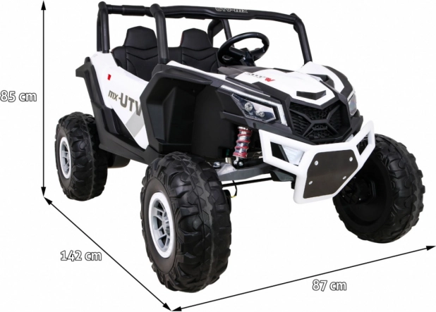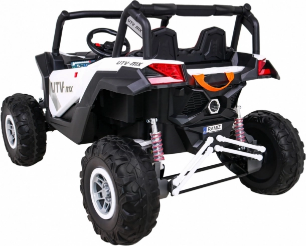 Beleef offroad-avonturen met het kinder voertuig UTV-MX. Vier motoren van 4×60 W, een hoge bodemvrijheid van 29 cm en vering voor en achter zorgen voor zeker rijgedrag over oneffenheden. De langzame Wolny Start beschermt het comfort van de kleine bestuurder en verhoogt de veiligheid.