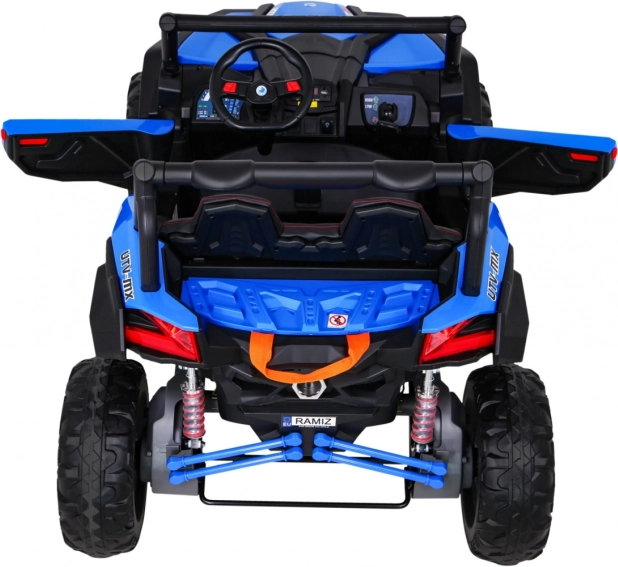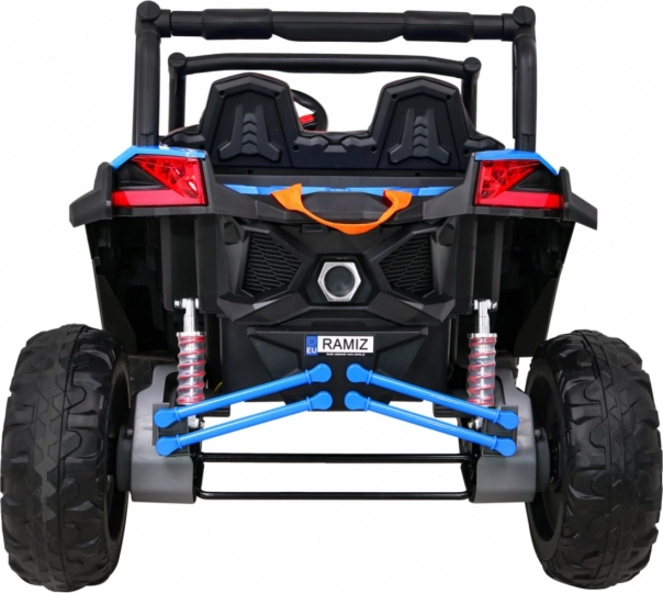 De buggy heeft LED-verlichting voor en achter met schakelaar, een laadstatusindicator, keuze voor voor-/achteruit en 2 vooruitversnellingen bediend met een schakelhendel. De stevige constructie, hoge bodemvrijheid van 29 cm en draagvermogen van 50 kg maken deze UTV ideaal voor broertjes/zusjes en langere ritten.